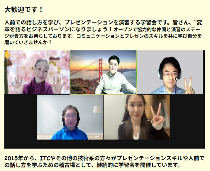 ITコーディネーターの知識体系とToastmastersのスキルとを融合した新コミュニケーション、”話したい事をしっかりと世の中の人に伝えられる能力育成”を志向しております。皆様へ研鑽の場を維持提供していきます。